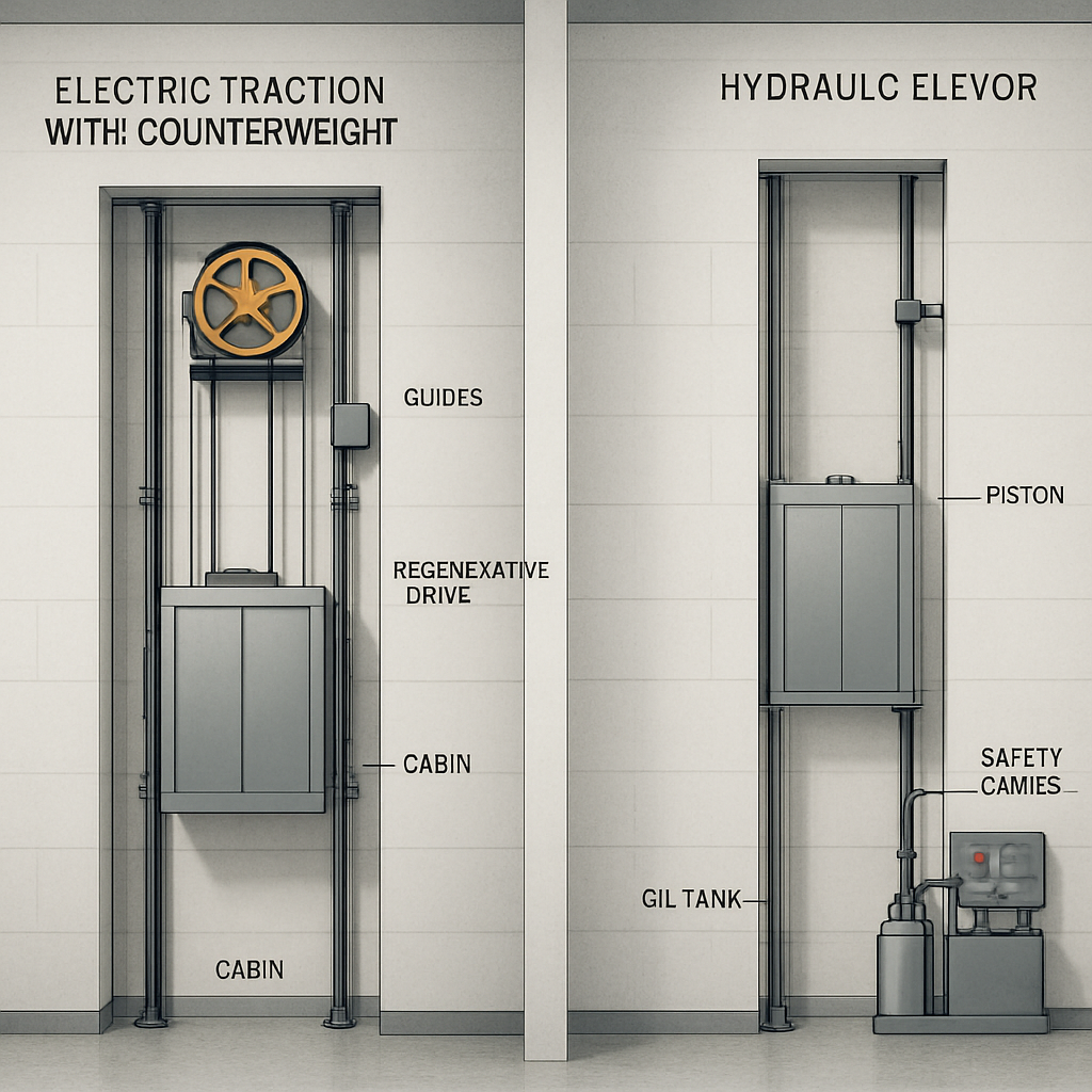 Antes de elegir un equipo de elevación, conviene entender las diferencias entre ascensores eléctricos e hidráulicos. La tecnología