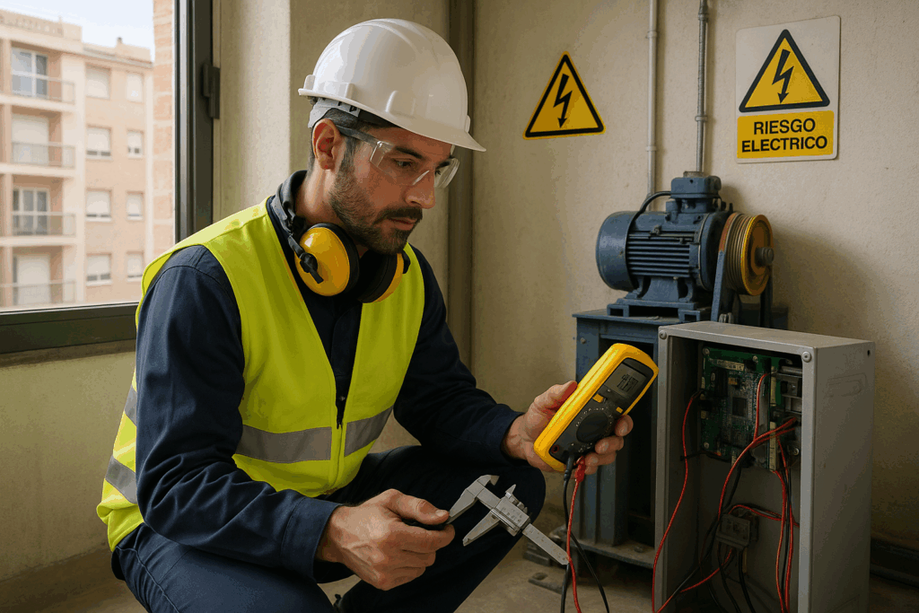 El protocolo operativo de Ascensores Dadri prioriza la seguridad. En consecuencia, aislamos la maniobra, señalizamos la zona y verificamos ausencia de tensión cuando procede.